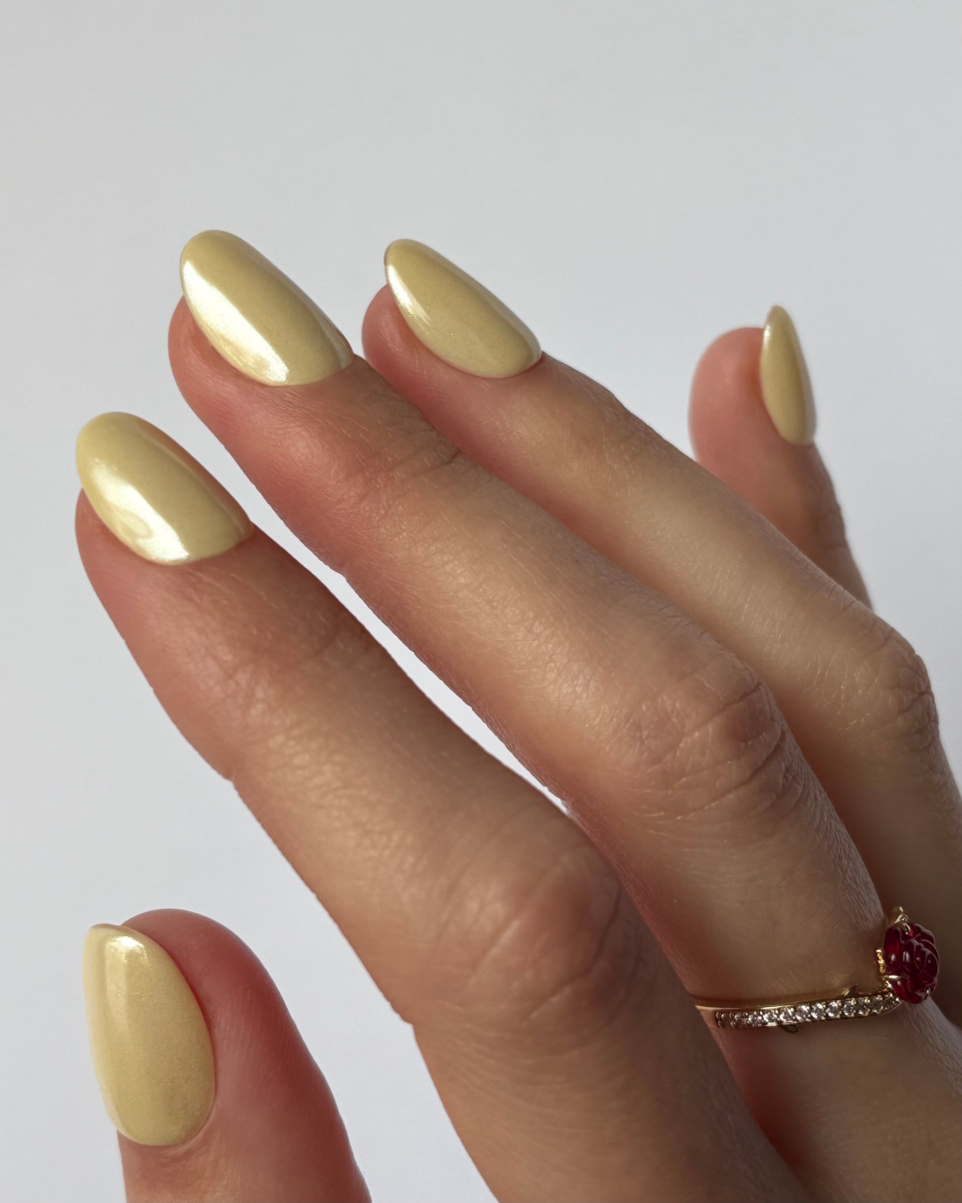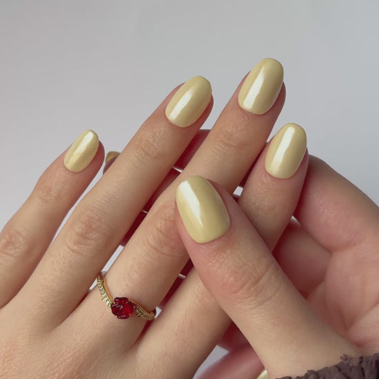 Amarillo suave y luminoso. Un tono mantequilla con un acabado vidrioso que aporta alegría y sofisticación a tus manos. Ideal para un look natural pero con personalidad.