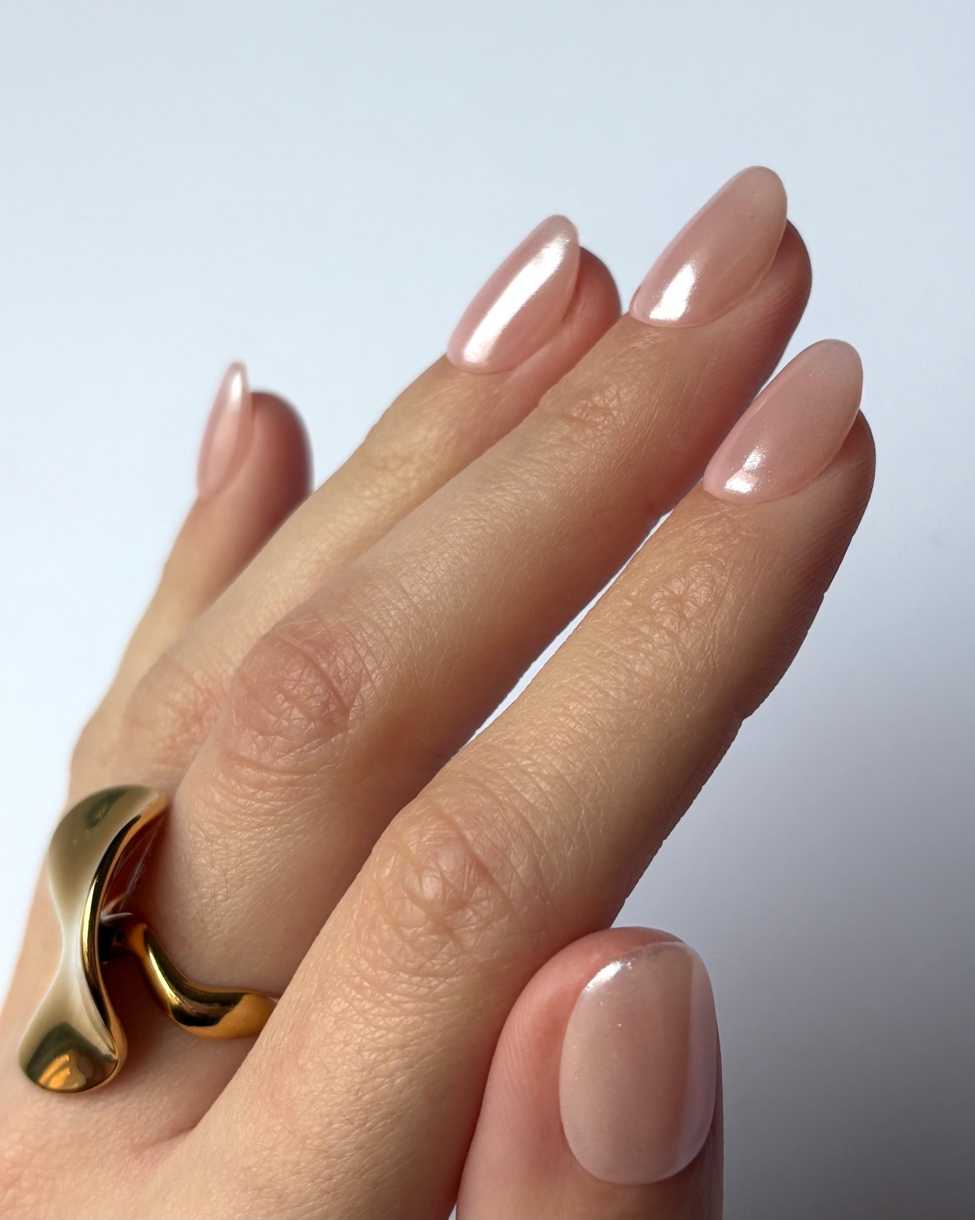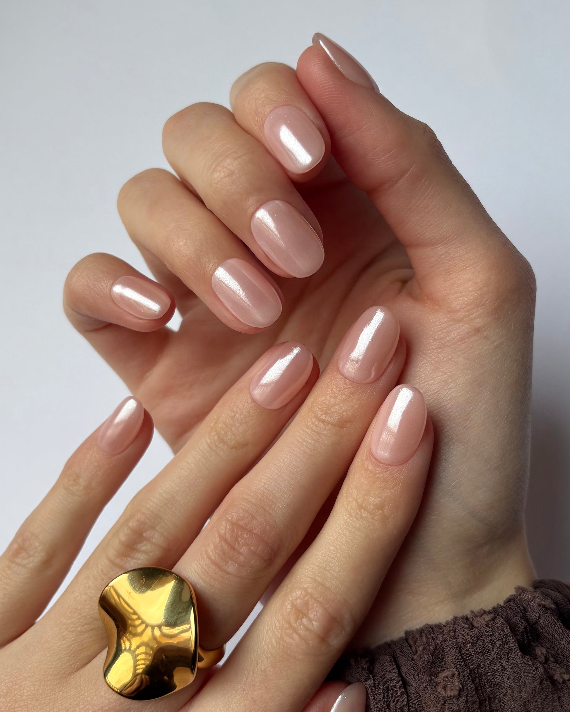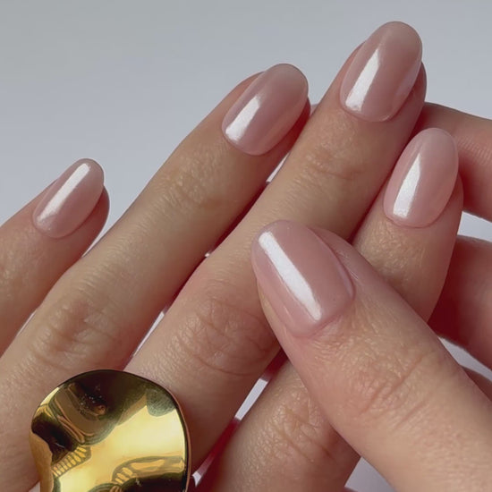 Brillo sofisticado. Base nude suave con un acabado vidrioso que aporta un look fresco, natural y elegante. Perfecto para un estilo minimalista y moderno que combina con todo.
